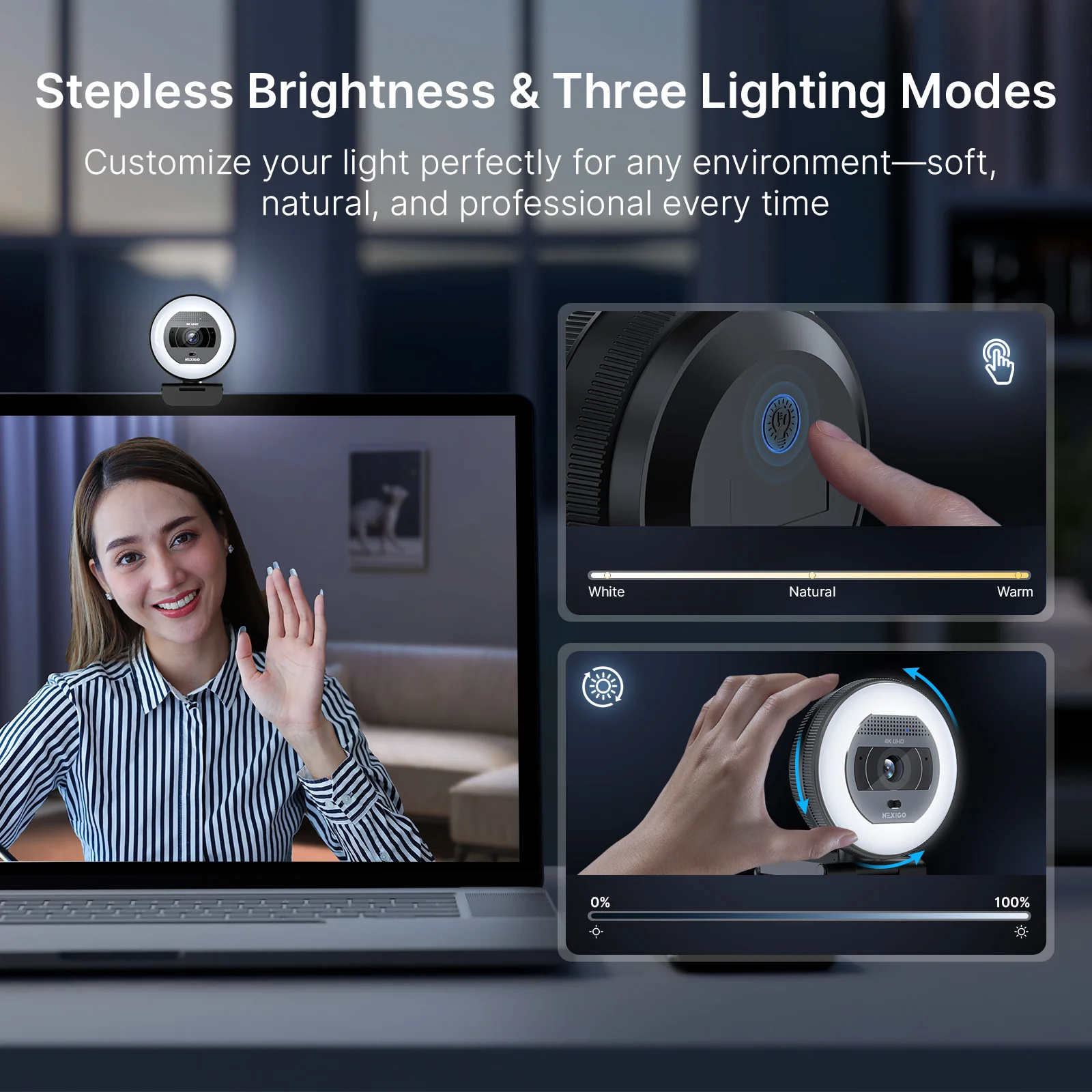 NexiGo N930E Pro 4K Webcam with Stepless & 3-Mode Adjustable Light